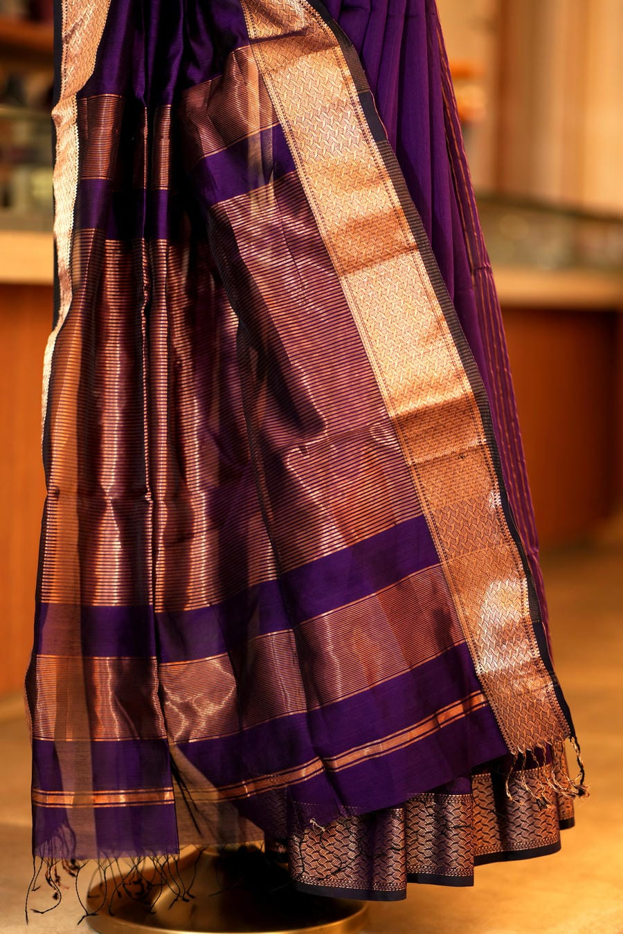 • Border: Intricate Copper-Gold Zari