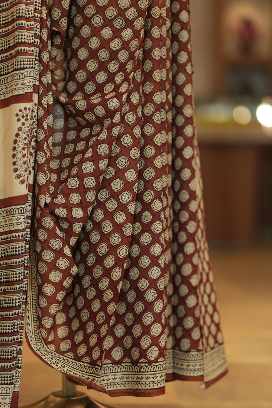 The Crimson Rhythm is designed for those who are drawn to heritage aesthetics, rich colour stories, and the graceful cadence of handblock printing.