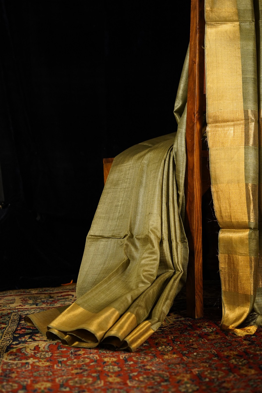 Soft and soothing, The Mridu Kosa is woven in pure Tussar (Kosa) Silk, celebrated for its natural texture and quiet, understated sheen. The delicate light green hue carries a sense of calm and freshness, echoing tender leaves and early morning light.