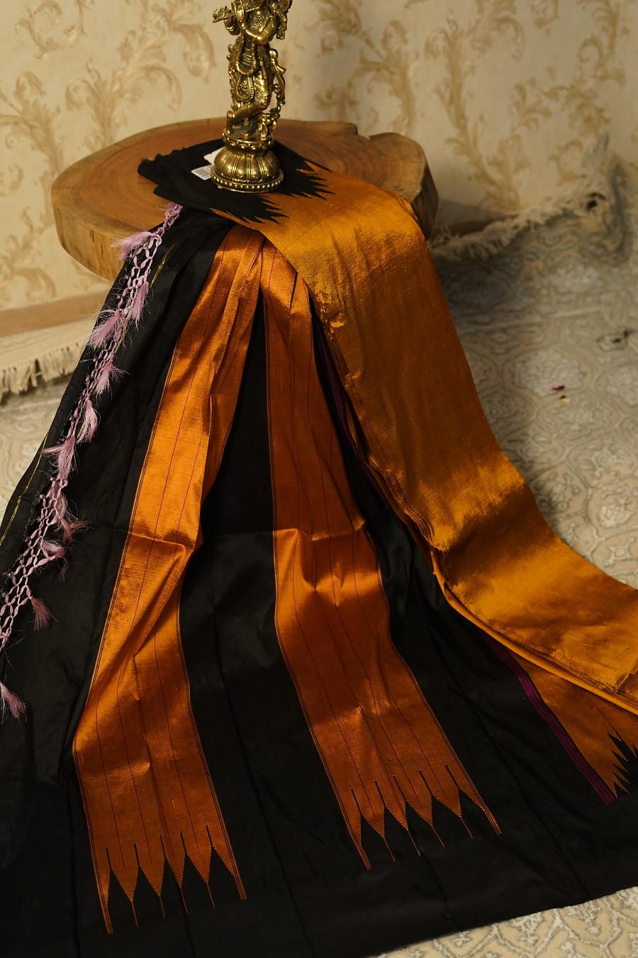 • Black border & pallu with temple motifs