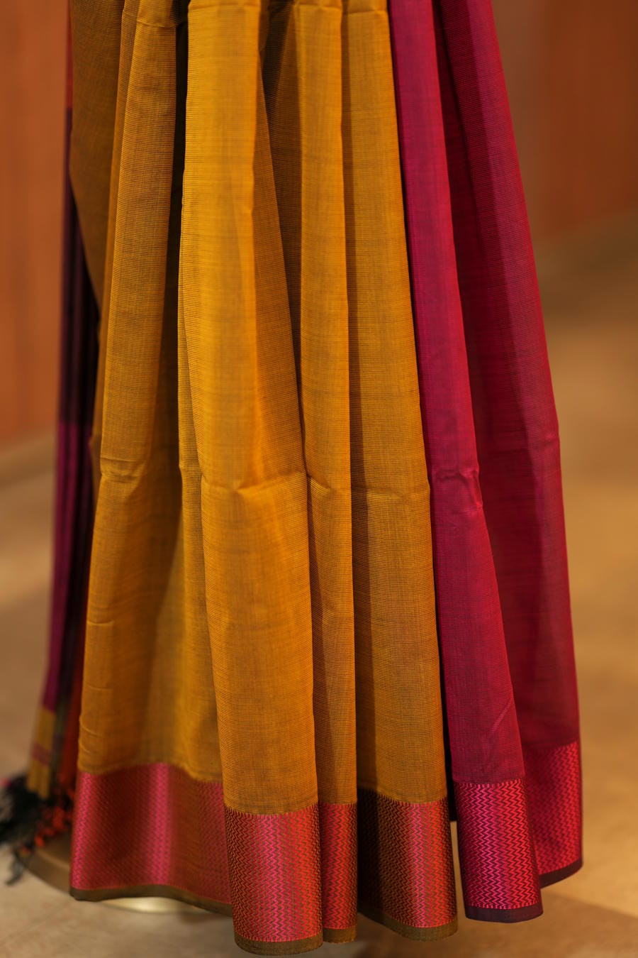 Tagline: A radiant harmony of mustard gold and festive magenta