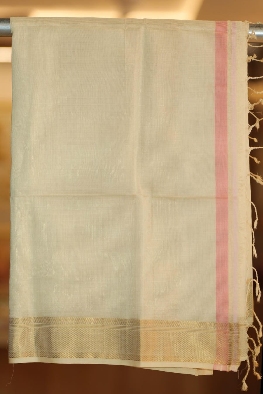 •Border: Subtle woven border with soft gold sheen