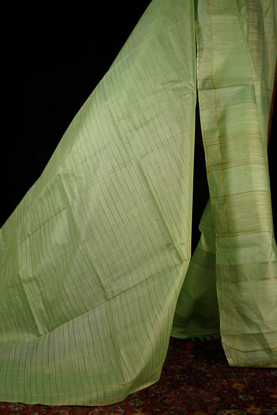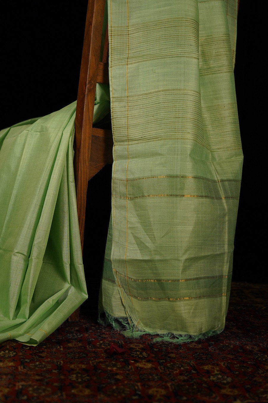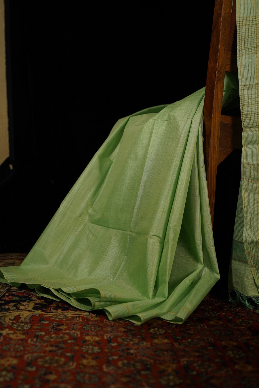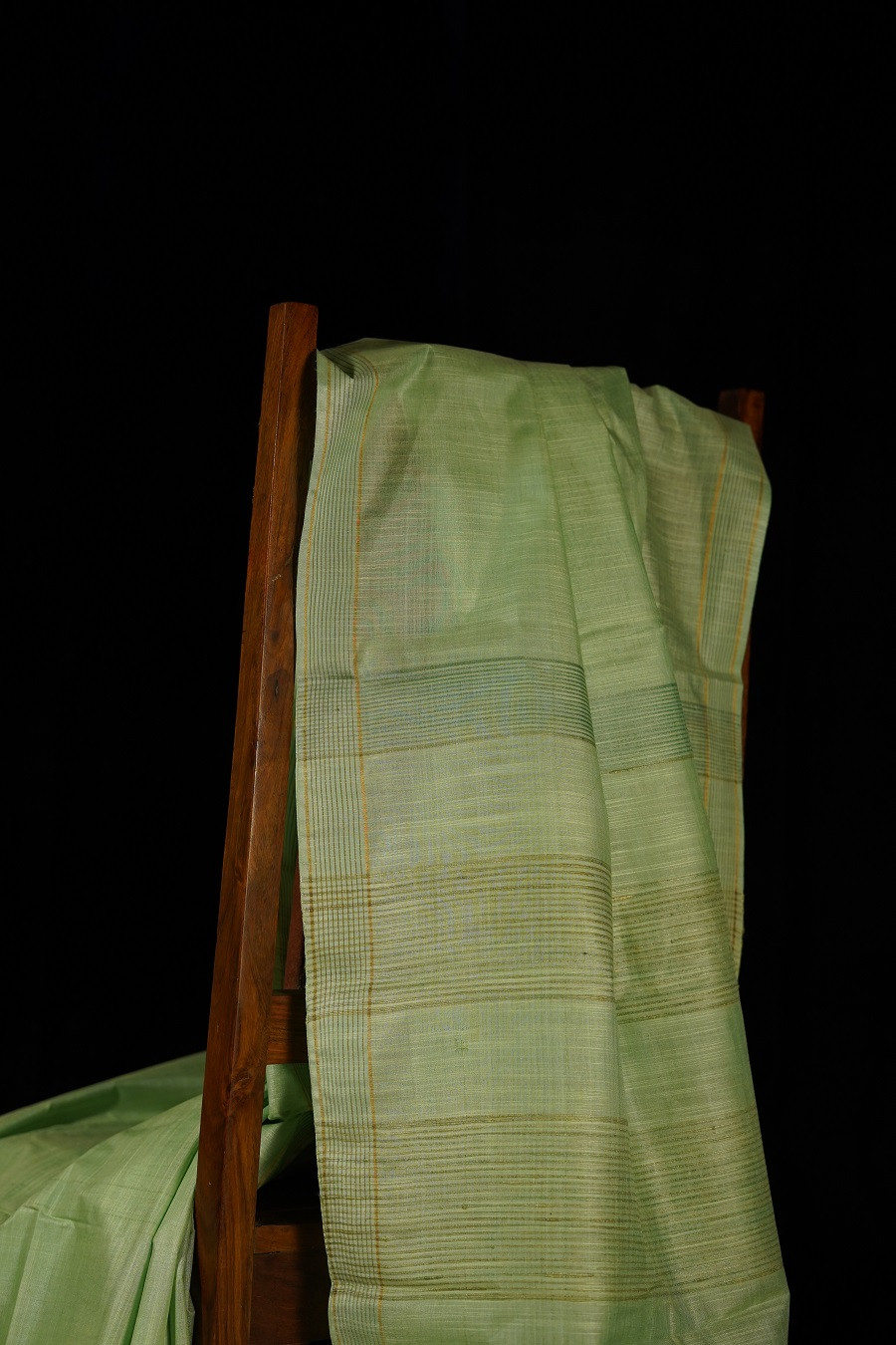 Soft and soothing, The Mridu Kosa is woven in pure Tussar (Kosa) Silk, celebrated for its natural texture and quiet, understated sheen. The delicate light green hue carries a sense of calm and freshness, echoing tender leaves and early morning light.