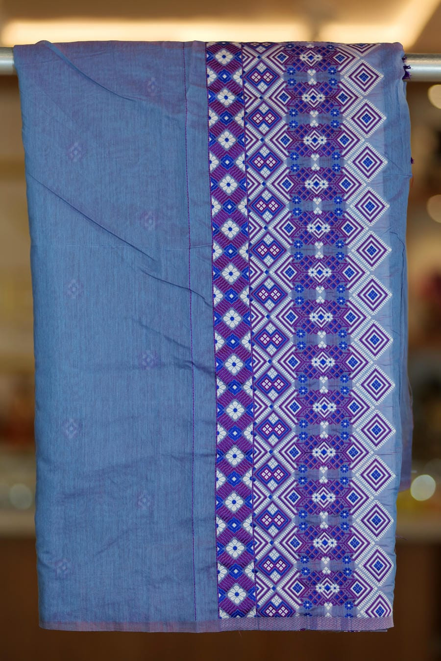 Calm and deeply graceful, this pure Assam cotton saree is inspired by the quiet depth of eastern rivers. Woven in a soothing muted blue, the saree carries a soft, breathable texture that feels effortless and refined.