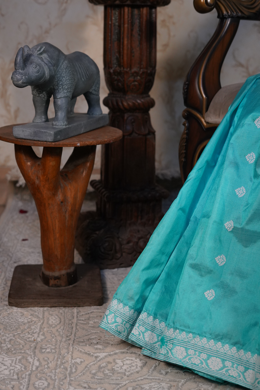 A flowing expression of eastern heritage in silk, The Neel Purva Sarita embodies timeless sophistication in every fold.