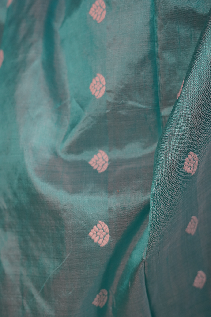 The silk drapes fluidly, creating a soft yet structured fall that enhances every silhouette. Its natural gloss catches the light beautifully, while the refined detailing lends depth and heritage character without overpowering its elegance.