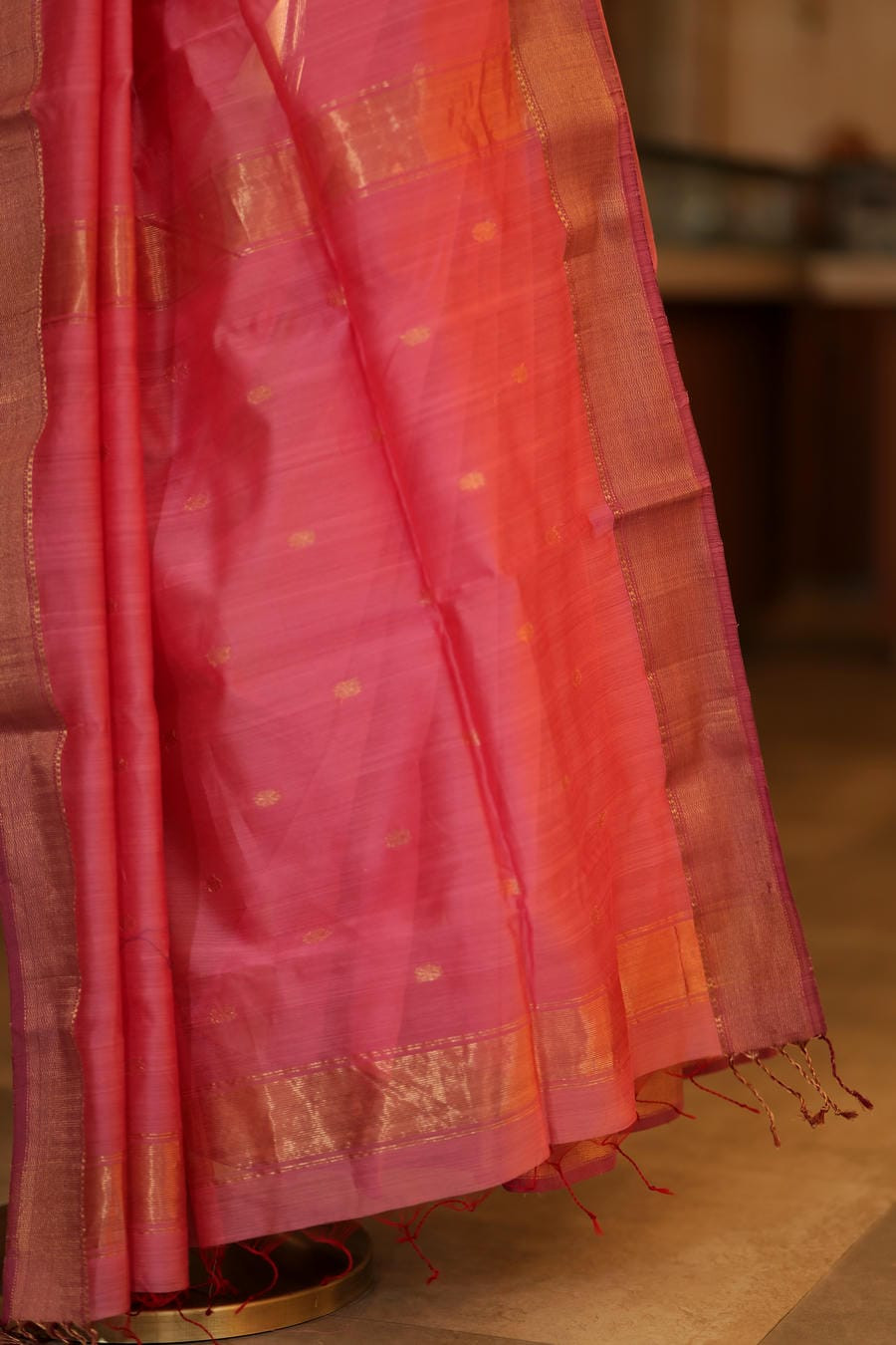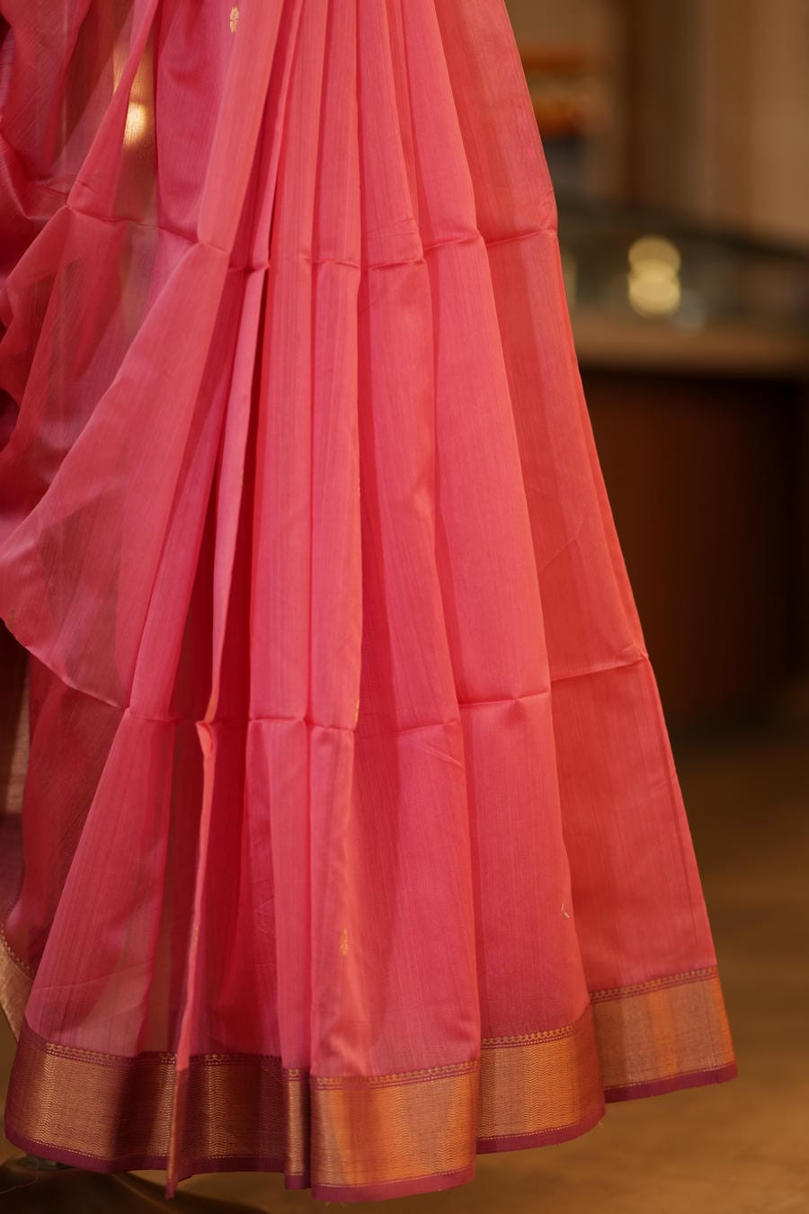 Colour: Lotus Pink with Gold Zari Border