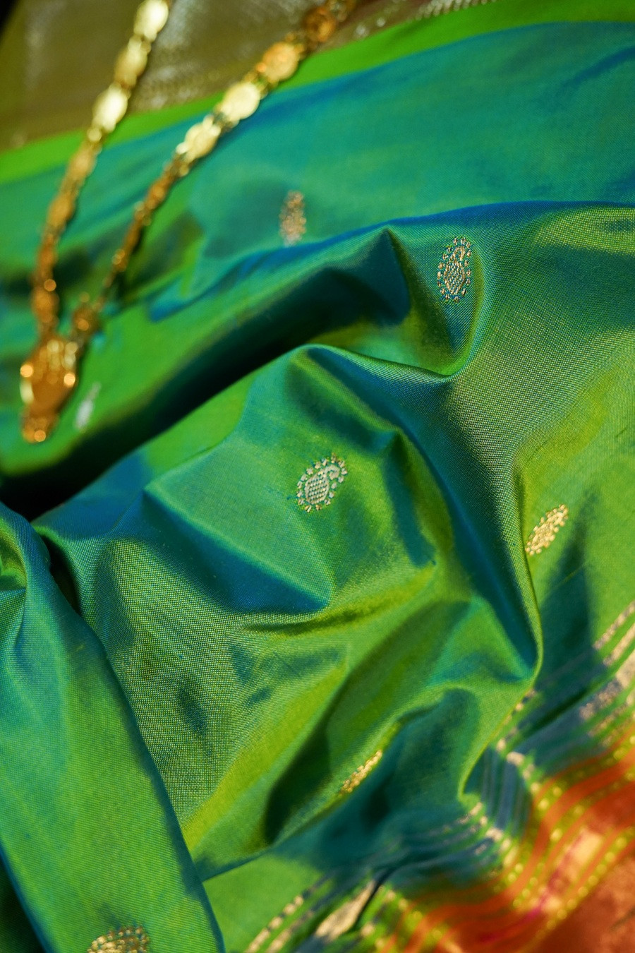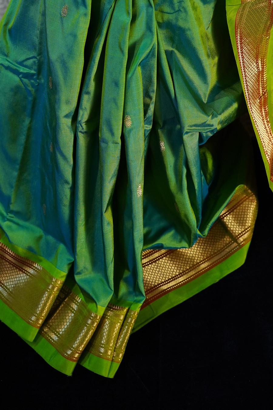 A royal drape where emerald meets saffron - bold, majestic, and eternally timeless.