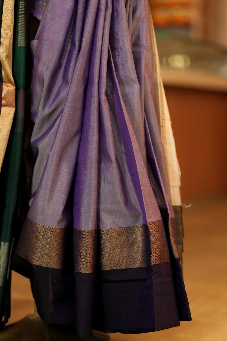 • Border: Broad woven border with subtle gold accent