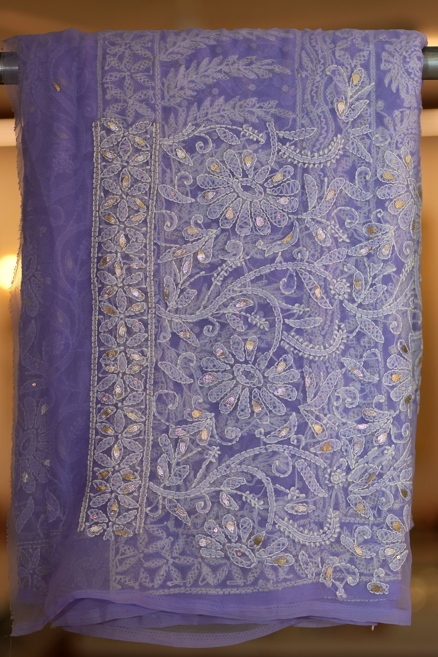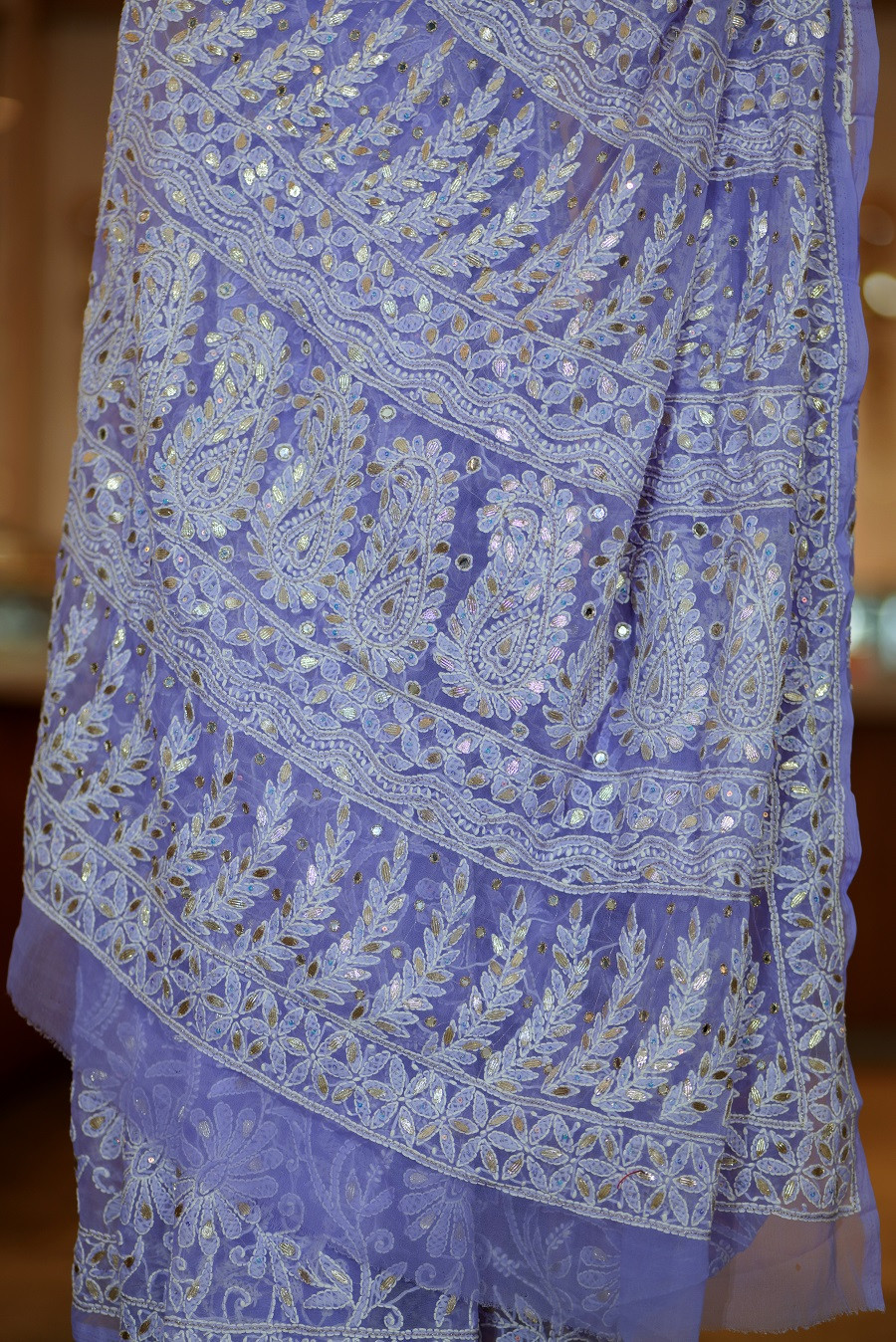Work: Handcrafted Lucknowi Chikankari with refined Gota Patti accents