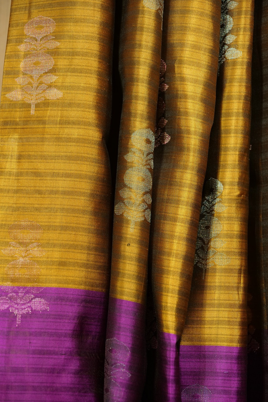 Colour: Brown with purple undertones & royal purple pallu