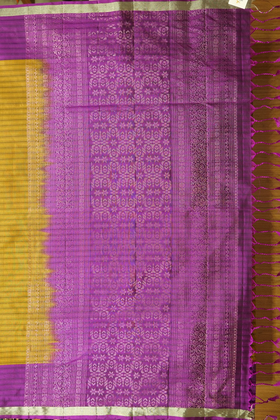 Border & Pallu: Traditional zari weave